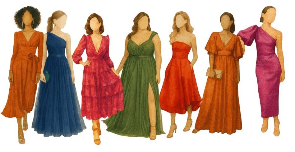 Para as mulheres, vestidos leves, conjuntos elegantes, saias com blusas arrumadas ou macacões são ótimas opções. E um pedido especial: por favor, NÃO USEM roupas brancas ou muito claras, que se assemelhem ao branco, como bege, amarelo manteiga, off white — essa cor está reservada para a noiva. A gente sabe que, se fosse o seu dia, você gostaria de ter esse destaque.